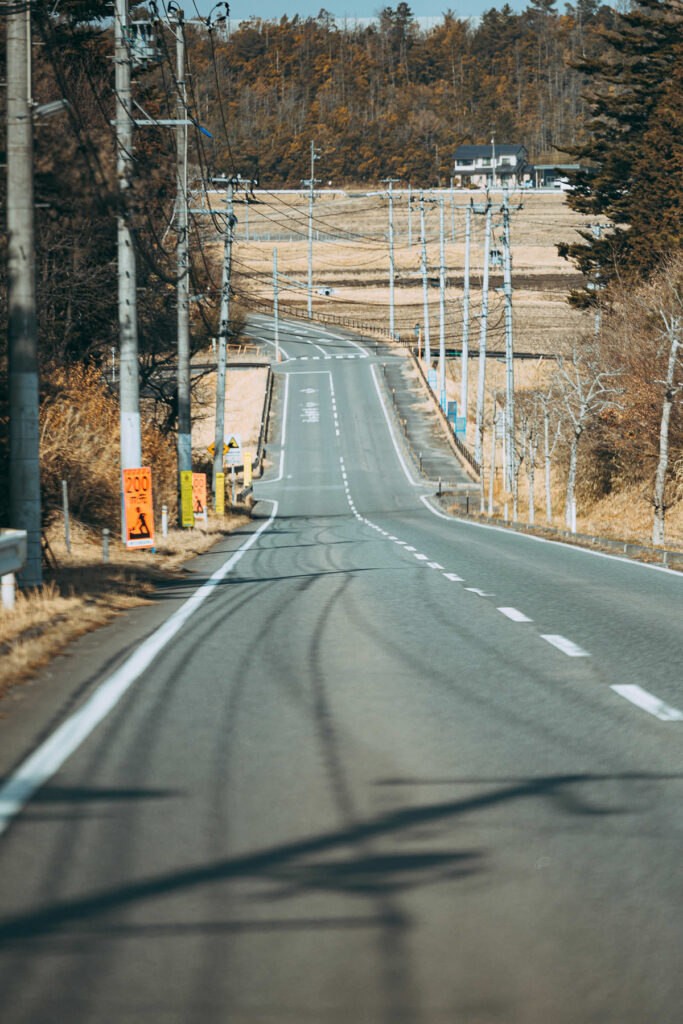 一般道のカーブ。 以前なら、車体が大きく傾いていました。