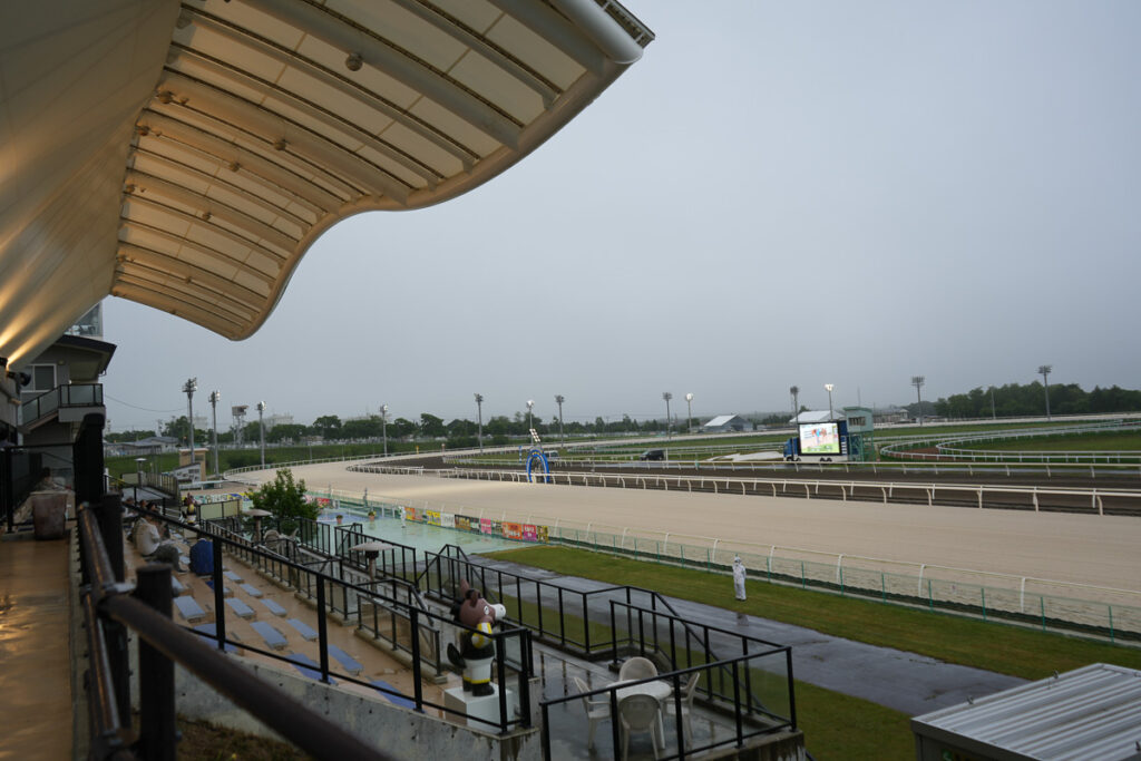 パドックで馬をじっくり観察したり、スタンドで迫力のレースを見たり、競馬非開催日でも広い施設をのんびり散策できます。馬産地らしいウッドチップの本格的なトレーニング施設も併設されていて、早い時間帯には調教風景が見られることも。