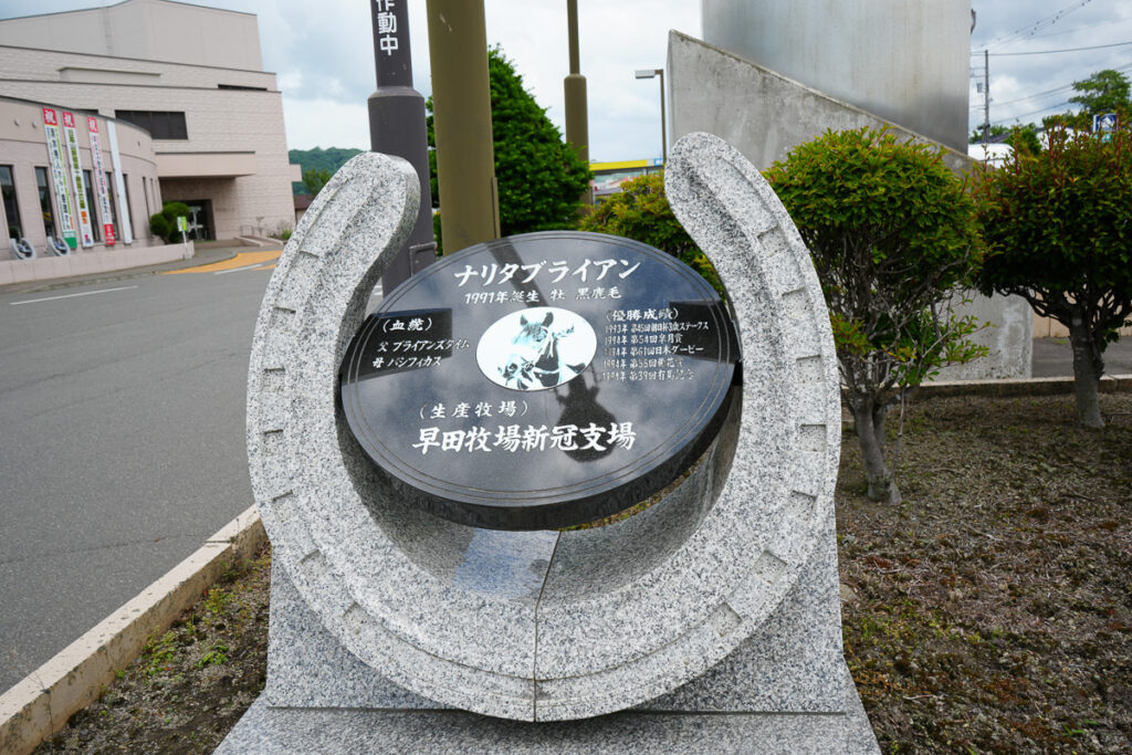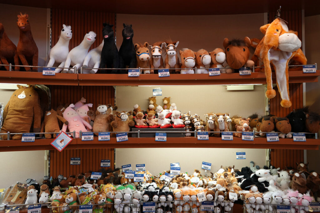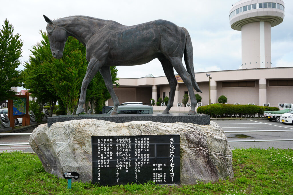 駐車場には、ハイセイコーの銅像や数多くの名馬が刻まれた「優駿の碑」がズラリ。競馬ファンにはたまらない空間です。物産館では馬関連グッズに加えて、名物「ピーマンソフトクリーム」も要チェック。鮮やかな緑色でインパクト大ですが、食べてみるとさっぱりしたピーマン風味で意外においしい!