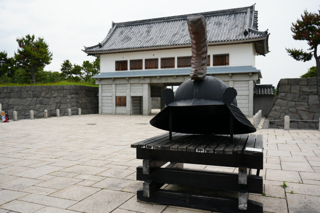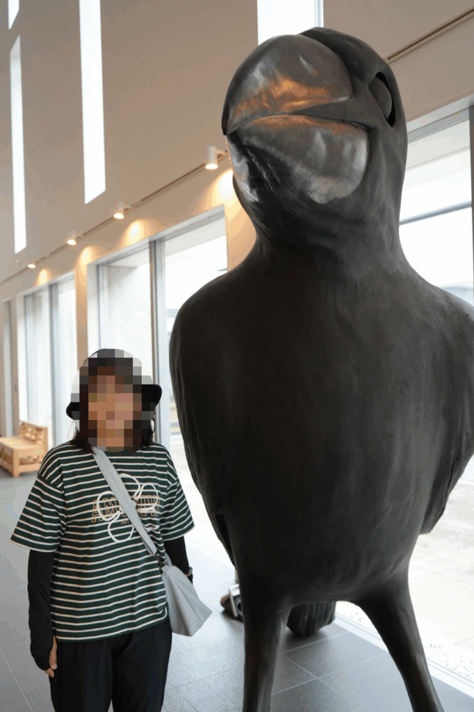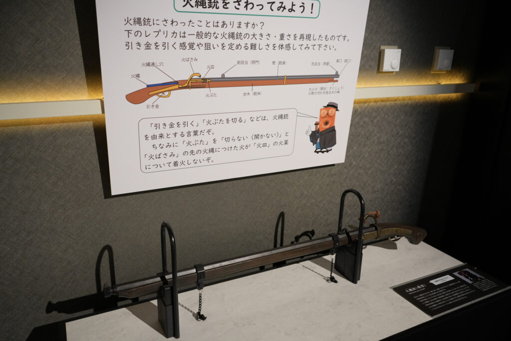 でかいカラスがお出迎えしてくれます。火縄銃のレプリカ、結構重いです。