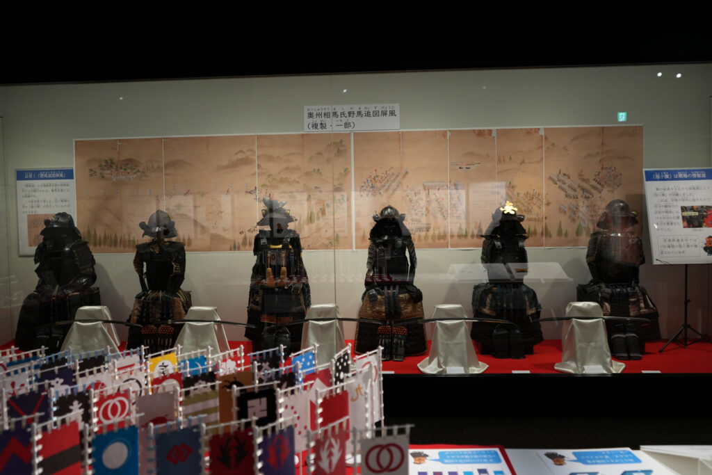 たくさんの「指小旗」の模型が展示されていて、とてもカラフルで洗練されたデザインでした。「指小旗」は、甲冑の背中に指すもので敵味方の区別や戦場における自分の位置を示す重要なものです。伊達家中では、178種類もの指小旗があったそうです。
