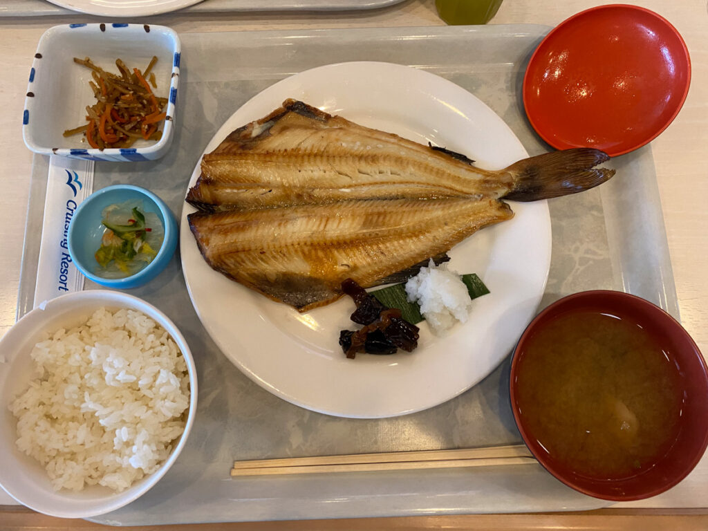 船での食事は、旅の楽しみの一つ。海を眺めながらいただく食事は、いつもより美味しく感じられます。