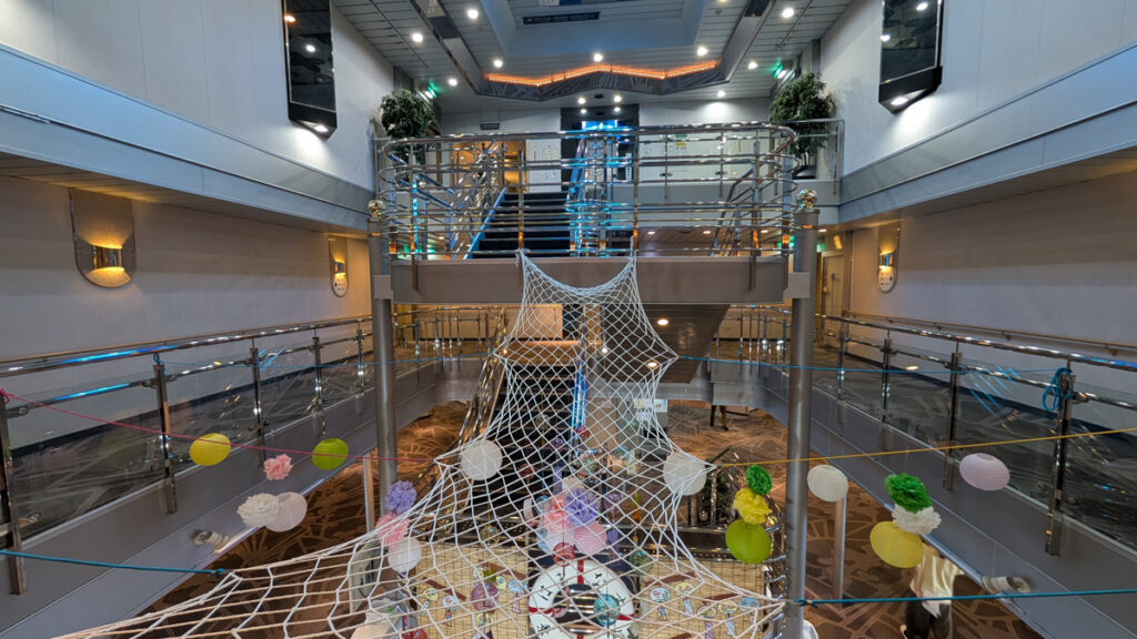中央吹き抜けには大きなネットアート作品が吊り下げられ、カラフルなポンポンが華やかさを添えています。こうした遊び心が、はまなすの魅力の一つだったと思います。