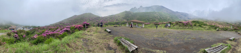 特に5月中旬から6月上旬にかけて、約5万株ものミヤマキリシマ(九州固有種のツツジ)が山肌をピンク色に染める光景は圧巻です! 今回訪れた5月18日はまさに見頃で、素晴らしい景色を楽しむことができました。