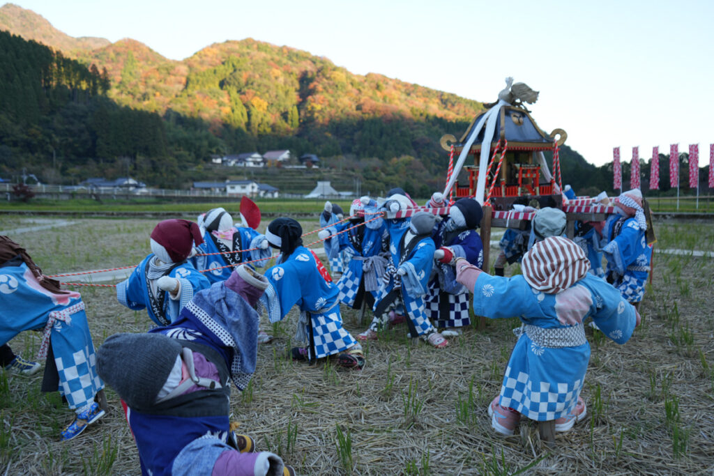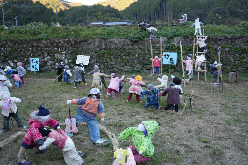 忍者姿の案山子、お祭り衣装を着た案山子、遊んでいる案山子の子供たち。それぞれに個性があって、まるで人形劇を見ているような楽しさがありました。