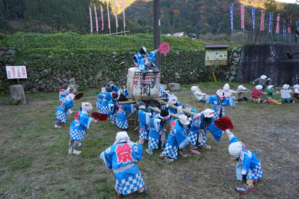 特に印象的だったのが、大きな酒樽神輿を担いでお祭りをしている様子を再現した案山子たちです。青い法被を着た案山子たちが楽しそうに踊っているように見えました。