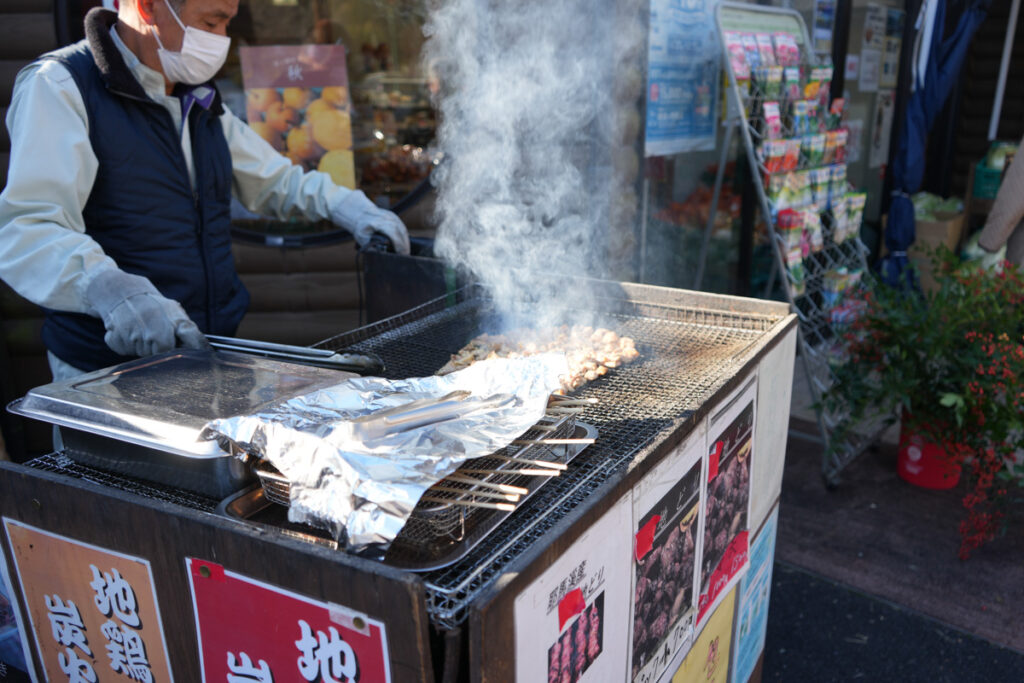 翌朝、駐車場を歩いていると、焼き鳥の屋台が準備されているのを見かけました。朝から良い香りが漂っていて、地元の方々にも人気があるようです。
