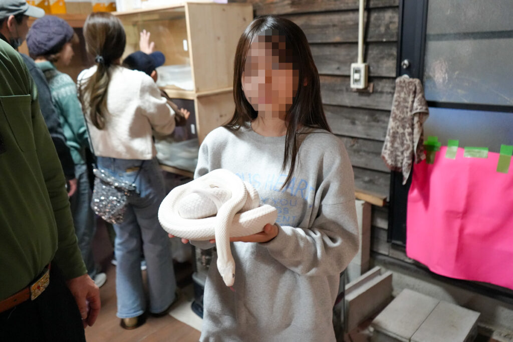 最初は少し緊張しましたが、実際に手に乗せてみると、意外とひんやりとしていて、おとなしい性格のようです。白蛇は金運や幸運の象徴とされているので、この体験ができるのは嬉しいですね。