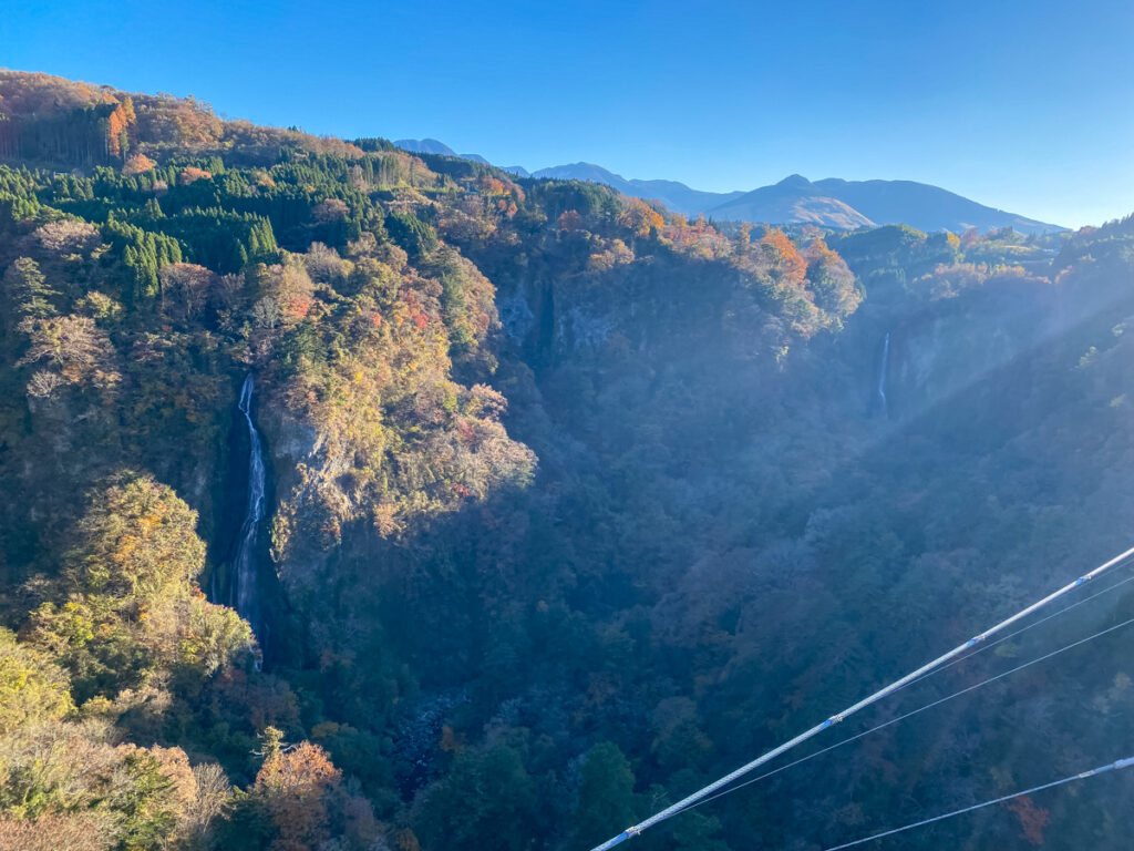 特に九重夢大吊橋からの紅葉の眺めは圧巻で、173mの高さから見下ろす渓谷と、周囲の山々が織りなす秋の景色は、まさに絶景でした。
