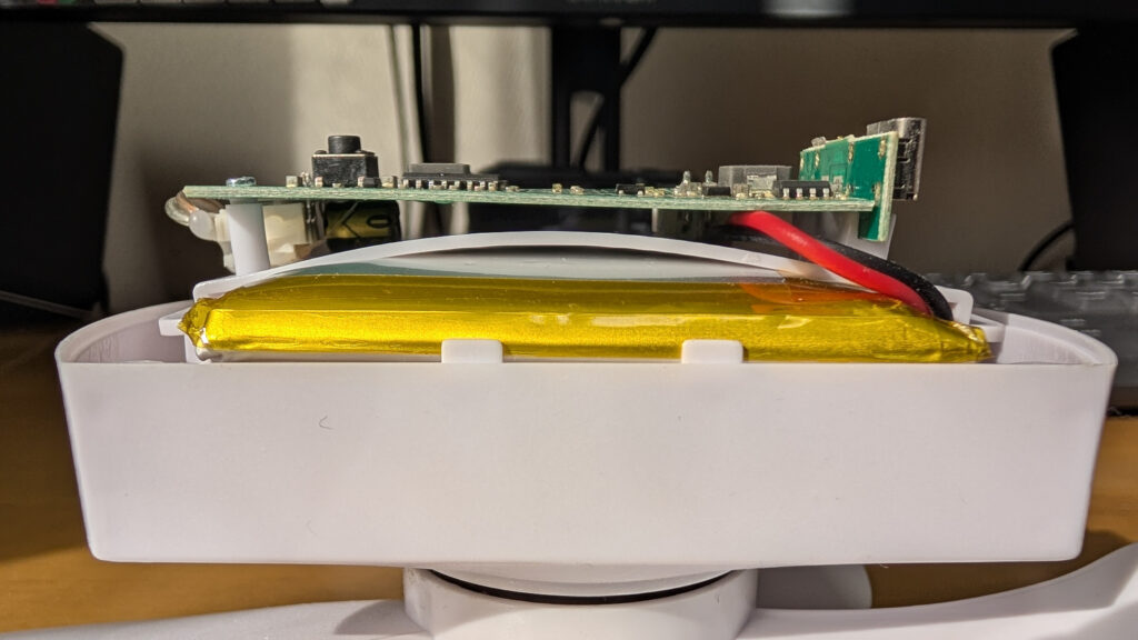 ケースを開けてみると、緑色の基板とリチウムバッテリーが見えました。