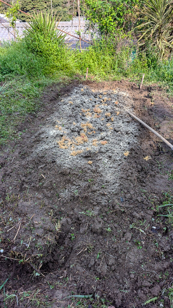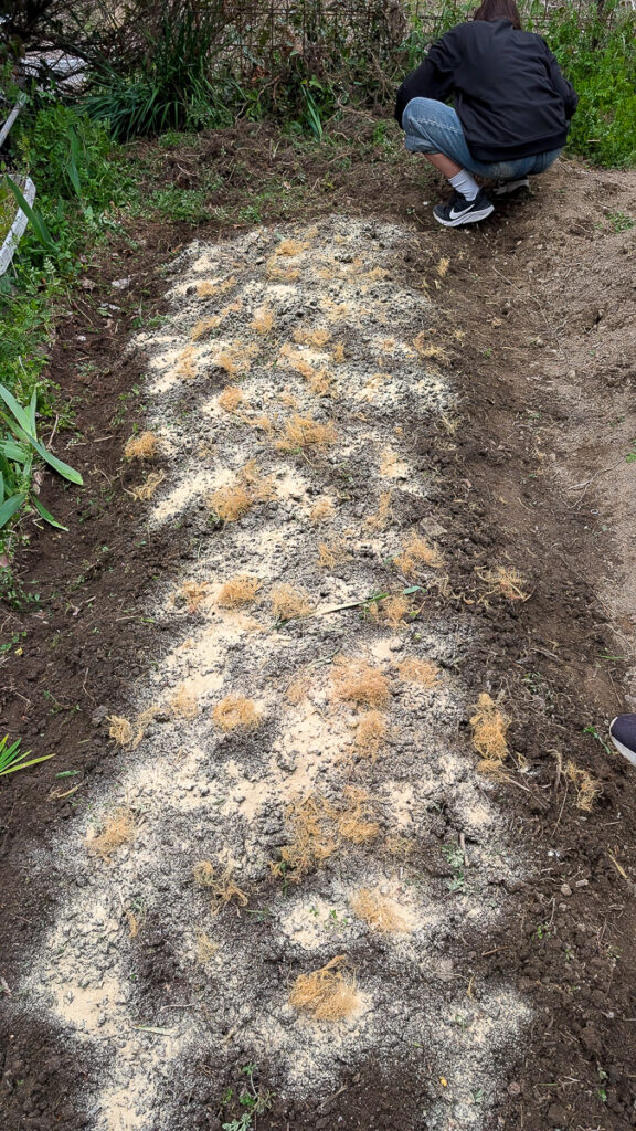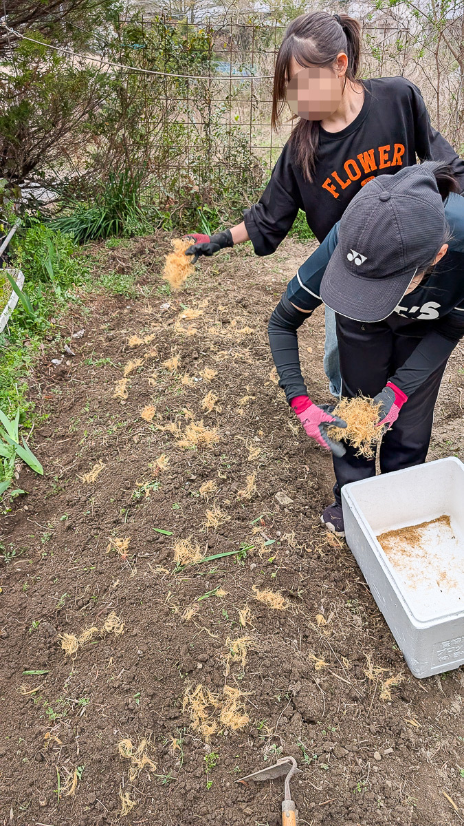 畝には米ぬかと、てんぐさ肥料(海藻系の有機肥料)を撒き、土に馴染ませました。