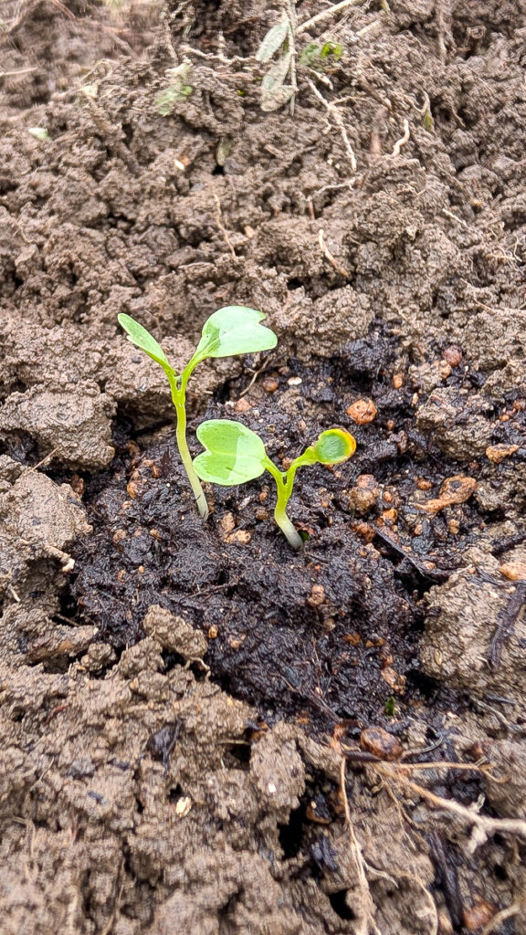 家でポットに種を蒔き、発芽させた苗を畑に移植したのですが、あとから種の袋をよくよく読むと「直播き」と書いてありました。